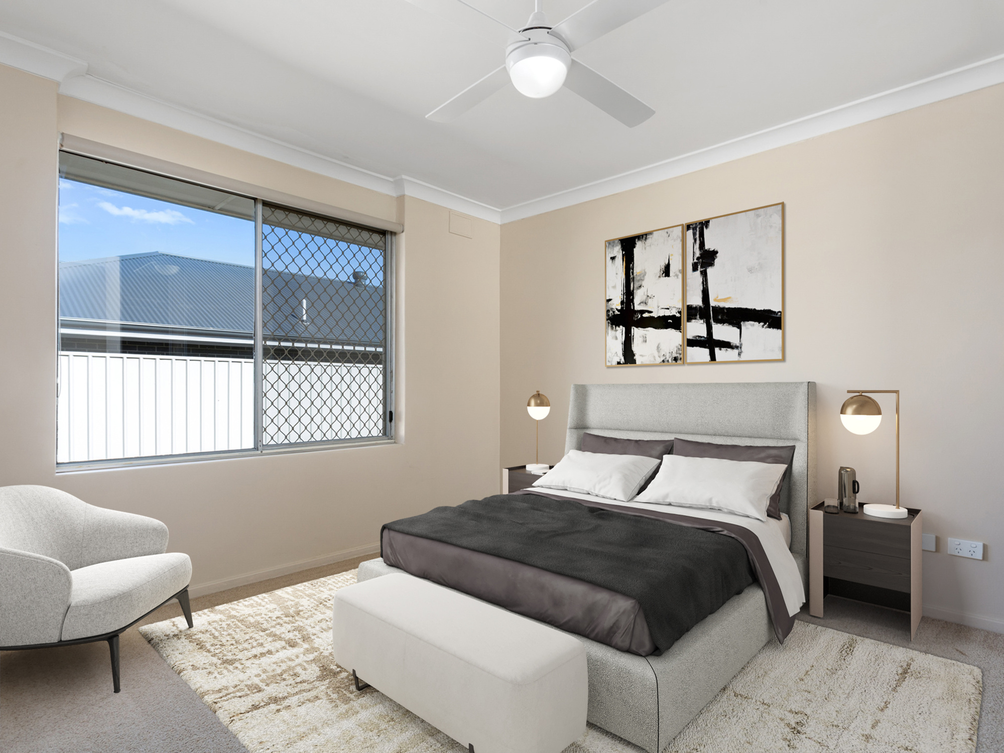 • Split System Air conditioner in lounge + fan to bedroom 1