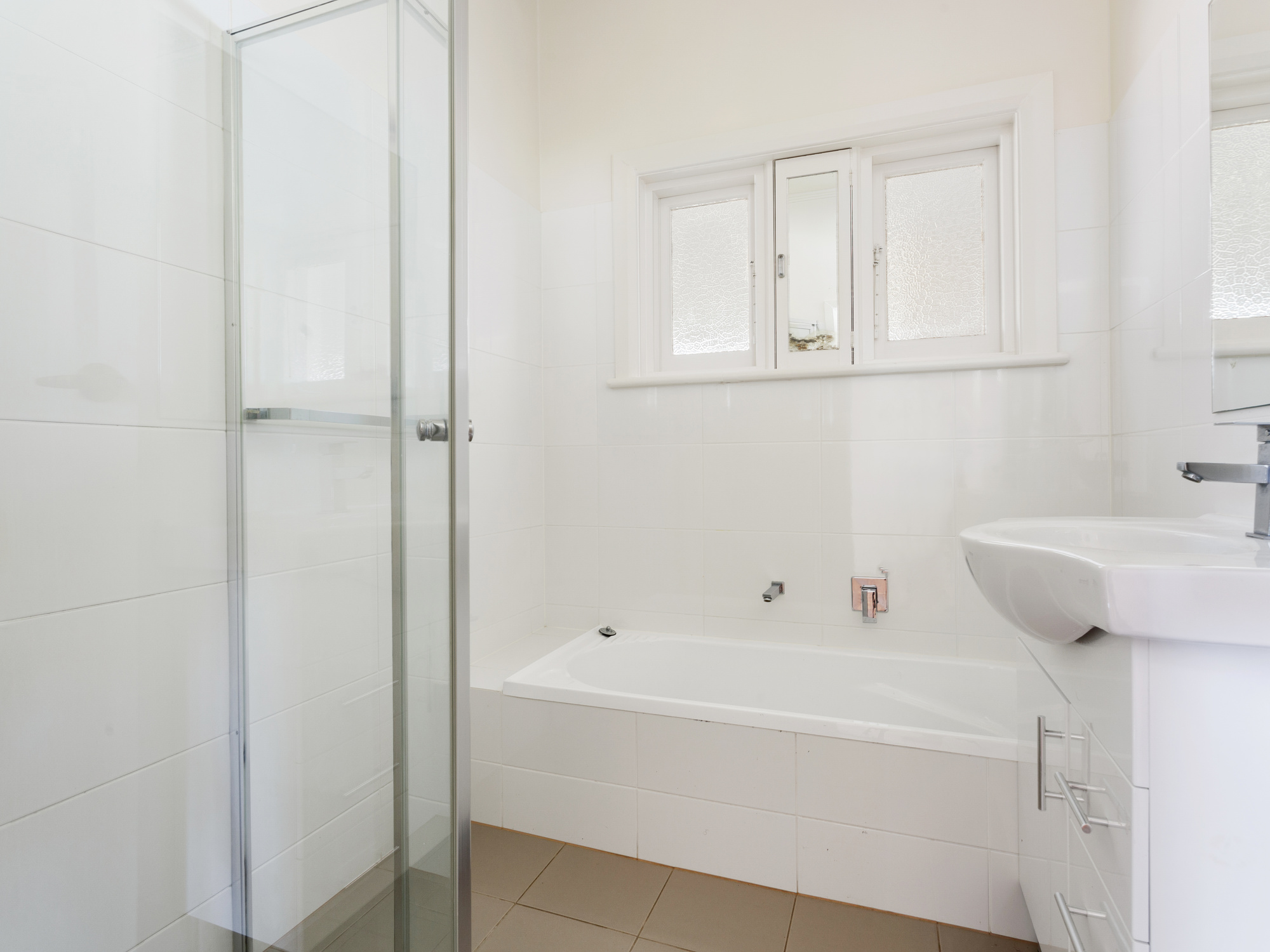 – Renovated bathroom with bath tub