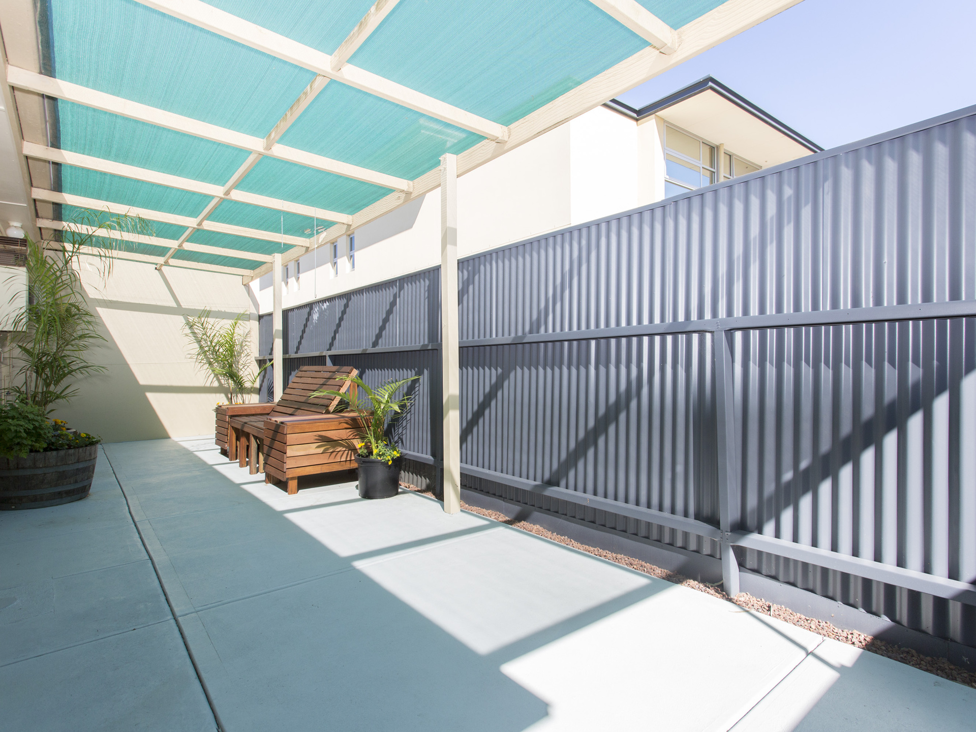 Set at the back of the single level group, you have your own huge pergola covered courtyard and separate storage room.