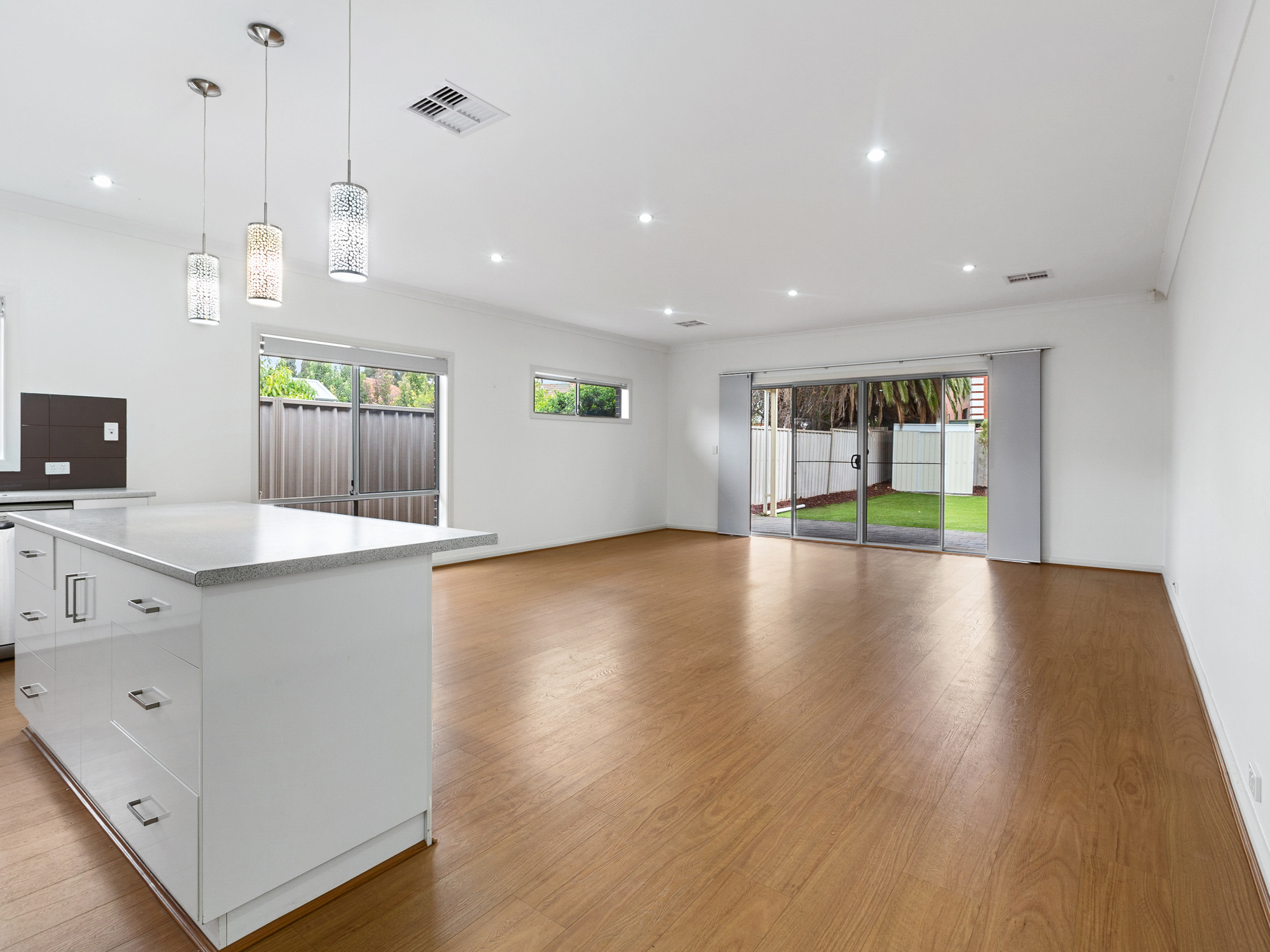 The large island bench is perfect for meal preparation and the undercover paved courtyard is an ideal spot to host gatherings year-round. With second courtyard access through the third bedroom, there is no shortage of space for outdoor activities.